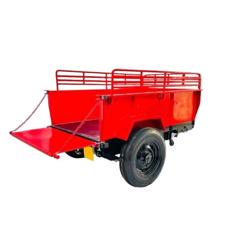 This model ships with tyres fitted—so you’re ready to roll on day one. The balanced axle and tuned leaf-spring suspension keep the trolley steady on undulating farm tracks. A thick-gauge chassis with cross-members resists twist during tipping, protecting your hydraulic hardware and tailgate over years of service.